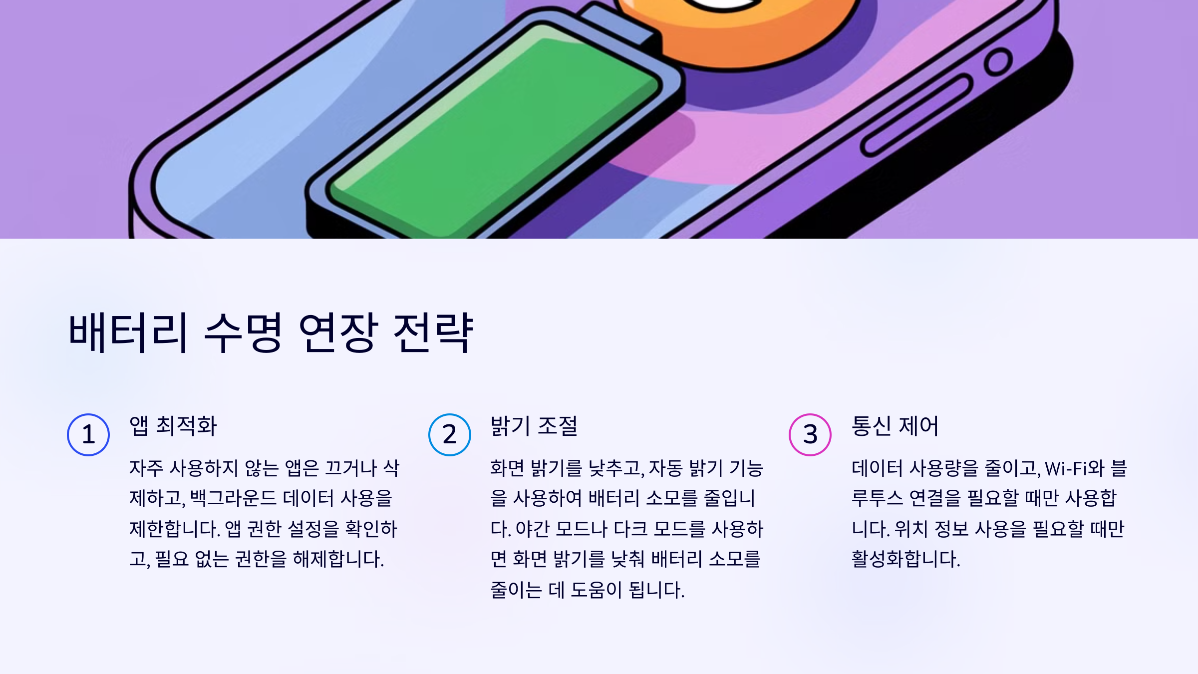 ๋ฐฐํฐ๋ฆฌ ์๋ชจ๋ฅผ ์ค์ด๊ธฐ ์ํด ์ค์ฒํ ์ ์๋ ํจ๊ณผ์ ์ธ ๋ฐฉ๋ฒ๋ค์ ์ ๋ฆฌํด๋ดค์ด์. ์ค๋งํธํฐ์ ์ค๋ ์ฌ์ฉํ๋ ค๋ฉด ์๋์ ํ์ ๊ผญ ์ฐธ๊ณ ํ์ธ์! ๐