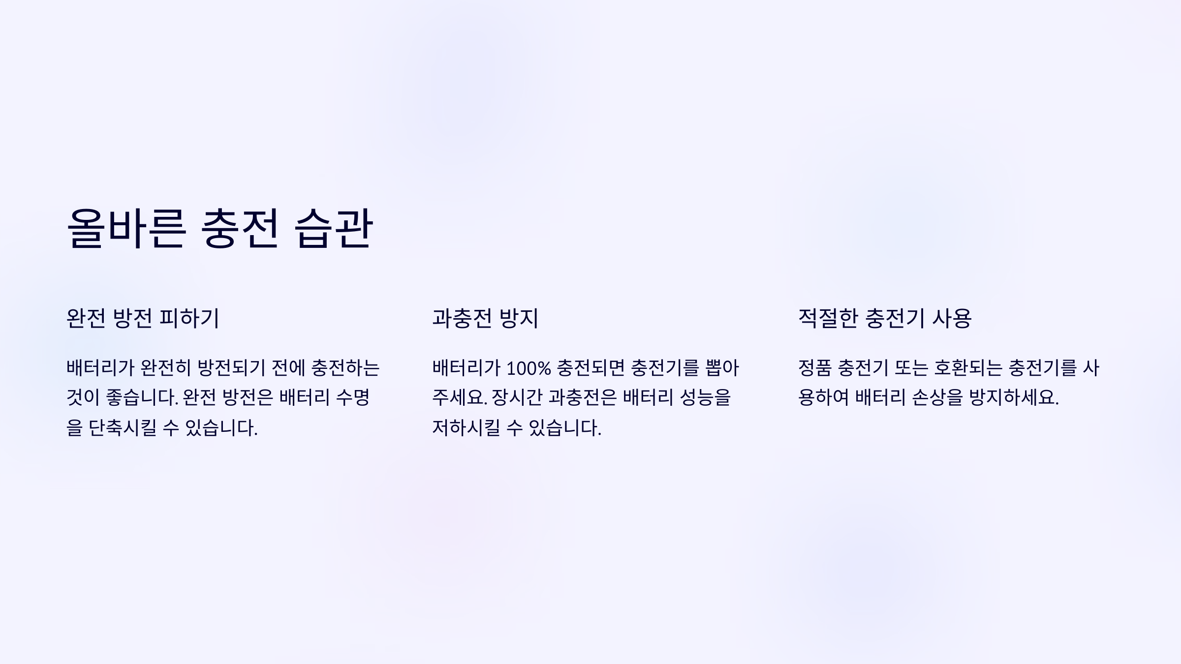 ๋ฐฐํฐ๋ฆฌ ์๋ช ์ ์ต๊ด์ ๋ฐ๋ผ ํฌ๊ฒ ๋ฌ๋ผ์ ธ์! ์ ๋ด์ฉ์ ์ฐธ๊ณ ํด์ ์ฌ๋ฐ๋ฅธ ์ถฉ์ ๋ฐฉ๋ฒ์ ์ค์ฒํด๋ณด์ธ์. โก๐ฑ