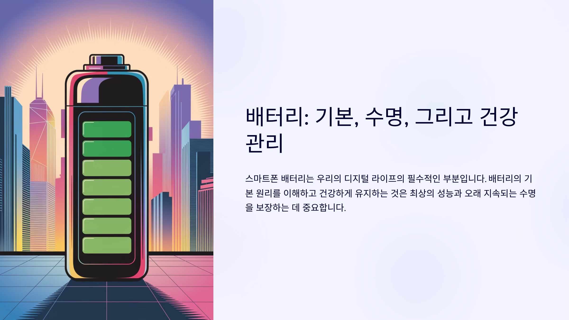๋ฐฐํฐ๋ฆฌ๋ ๋จ์ํ ์ถฉ์ ์ต๊ด๋ฟ๋ง ์๋๋ผ ํ๋์จ์ด ๊ด๋ฆฌ๋ ์ค์ํด์. ์ค๋งํธํฐ์ ์ค๋ ์ฌ์ฉํ๋ ค๋ฉด ๋ฐฐํฐ๋ฆฌ๋ฅผ ๋ณดํธํ๋ ๋ฌผ๋ฆฌ์ ์ธ ๋ฐฉ๋ฒ๋ ์์์ผ ํด์. ๐ ๏ธ